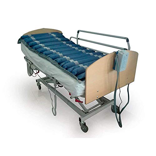 EFICACIA TERAPÉUTICA: este colchón antiescaras cuenta con 20 celdas que se hinchan y descinchan en periodos de entre 6 y 8 minutos, este colchón con motor ayuda a reducir el dolor del paciente y a aliviar la presión que genera el estar prolongados periodos de tiempo tumbado, mejora la circulación sanguínea y ayuda a reducir la fricción con el colchón antillagas y la aparición de escaras