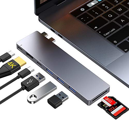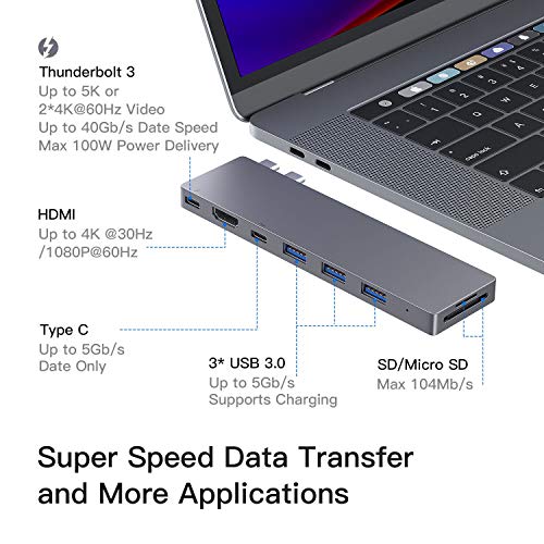 【Especialmente para MacBook Pro】: USB C Hub con puertos DUAL tipo C, Compatible con MacBook Pro 2019/2018/2017, 13 pulgadas y 15 pulgadas, Macbook Air 2018/2019; El adaptador C USB con Thunderbolt 3 le permite simultáneamente la carga y transferencia de datos para MacBook Pro.