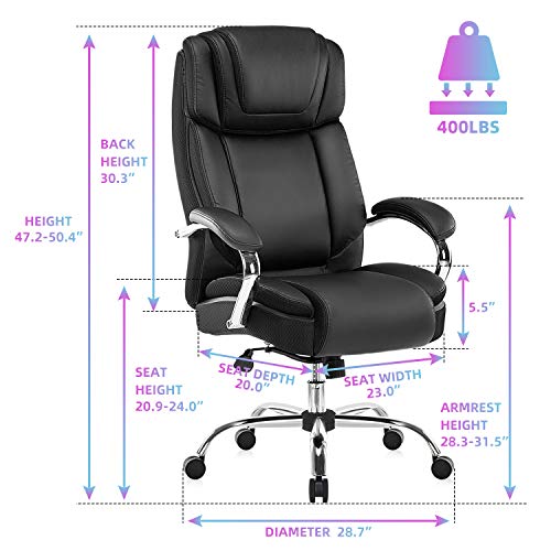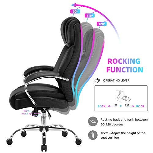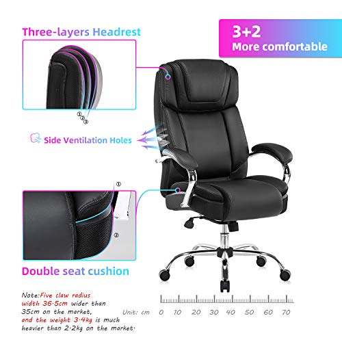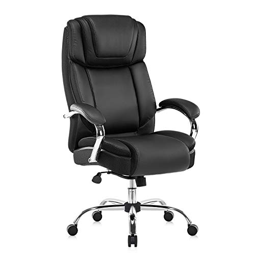 Silla de oficina de piel regenerada: la silla ejecutiva grande y alta de Yamasoro fue diseñada para tu comodidad. La silla tiene acolchado suave y grueso y borde del asiento en cascada para menos presión en la parte posterior de tus piernas para que puedas mantenerte cómodo incluso cuando tengas que sentarte durante horas
