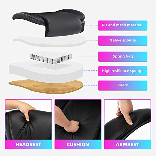 Comodidad para tu productividad: diseño ergonómico de silla de oficina con cojines de doble capa para sillas. Asiento de resorte de bolsillo de alta elasticidad. Cojín de silla de escritorio 30 ~ 50% más grueso que el asiento normal. Una silla de oficina y respaldo con reposacabezas contorneado grueso. Comodidad continua para largas horas de juego o trabajo. Mayor densidad, mejor elasticidad, mayor resistencia. Combinación perfecta para tu mesa de juego y escritorios de ordenador